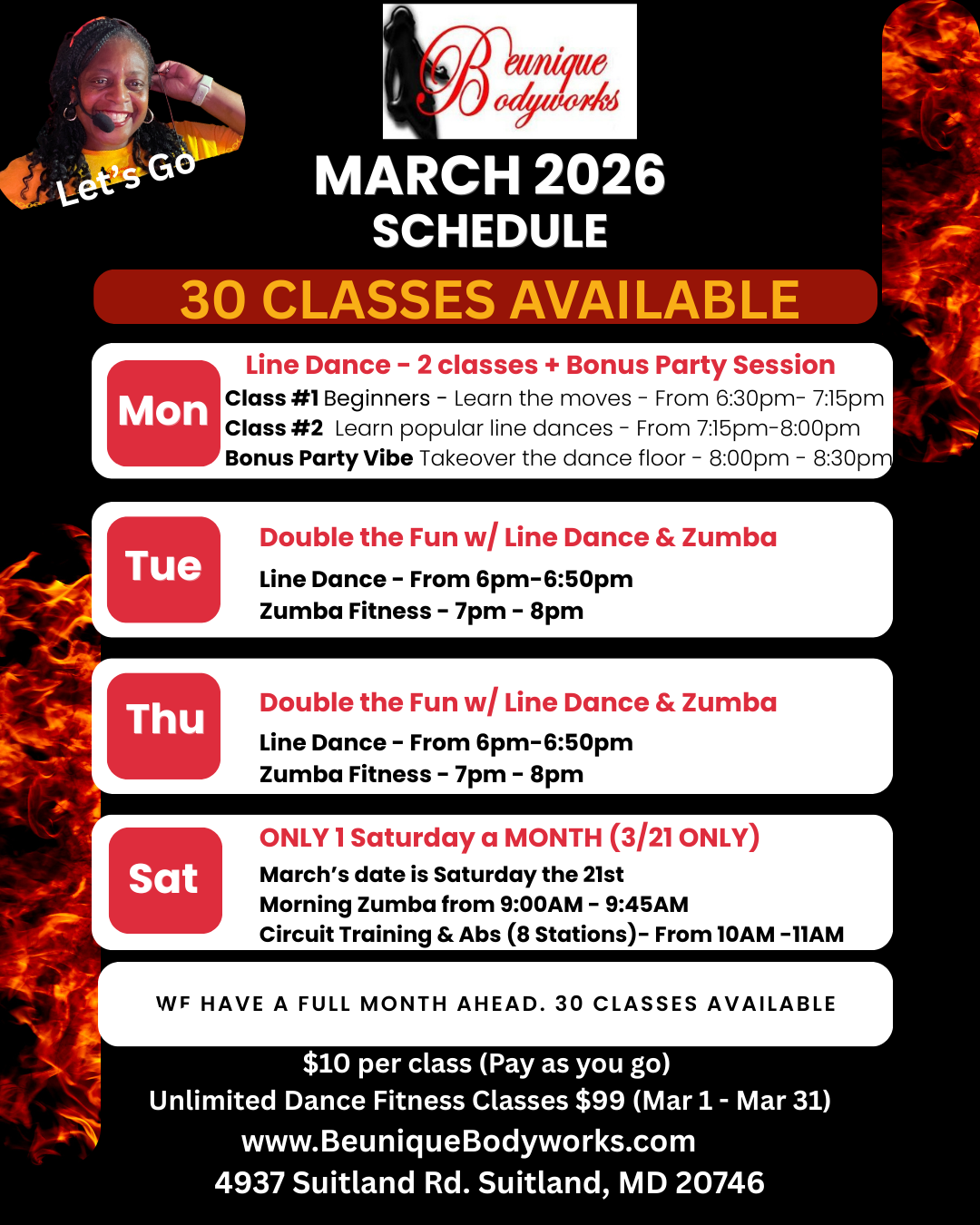Valid for Unlimited Dance Fitness Classes from March 1, 2026 - March 31, 2026 (29 classes available)
