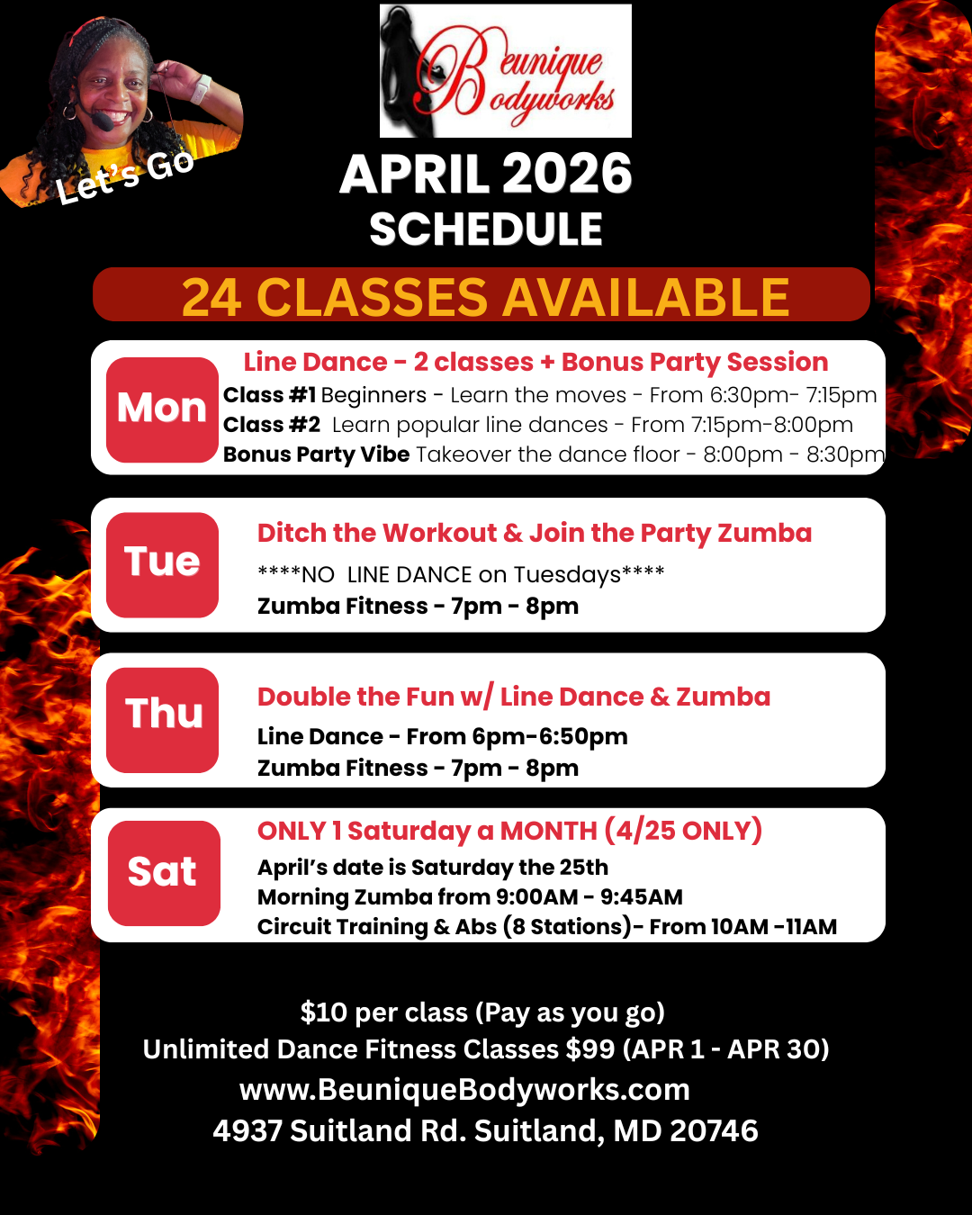 Valid for Unlimited Dance Fitness Classes from April 1, 2026 - April 30, 2026 (24 classes available)